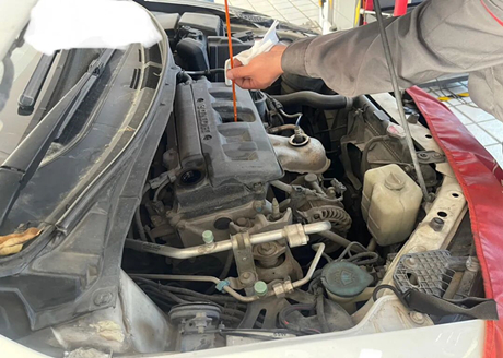 Before draining the old engine oil, the technician pulled out the oil dipstick to check. If the oil level is normal, it indicates that the engine is not burning oil.