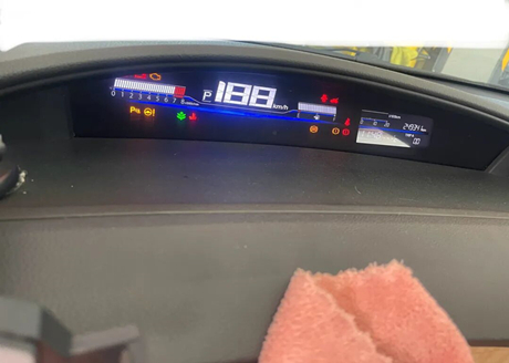 Its instrument design is quite unique, located very close to the windshield. As shown in the instrument panel below, the total mileage exceeds 240000 kilometers, nearly 250000 kilometers, which is quite a lot, averaging over 20000 kilometers per year, indicating that the owner uses the car frequently.