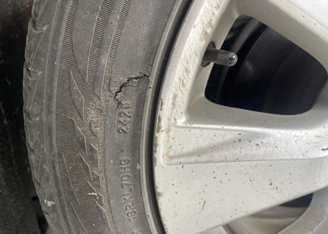 As shown in the figure below, there is a scratch at this location, and the number 2421 indicates that the tire was manufactured in the 24th week of 2021.