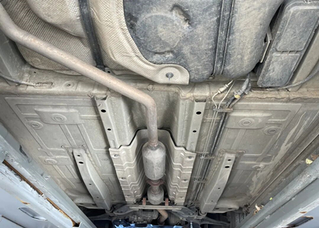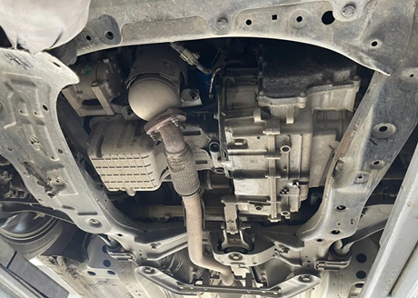 Let's first look at the chassis, as shown in the following picture. The bottom of the original car's engine and gearbox did not have protective plates, and there were signs of damage to the soft connection of the exhaust pipe, which was caused by scratches on the ground.