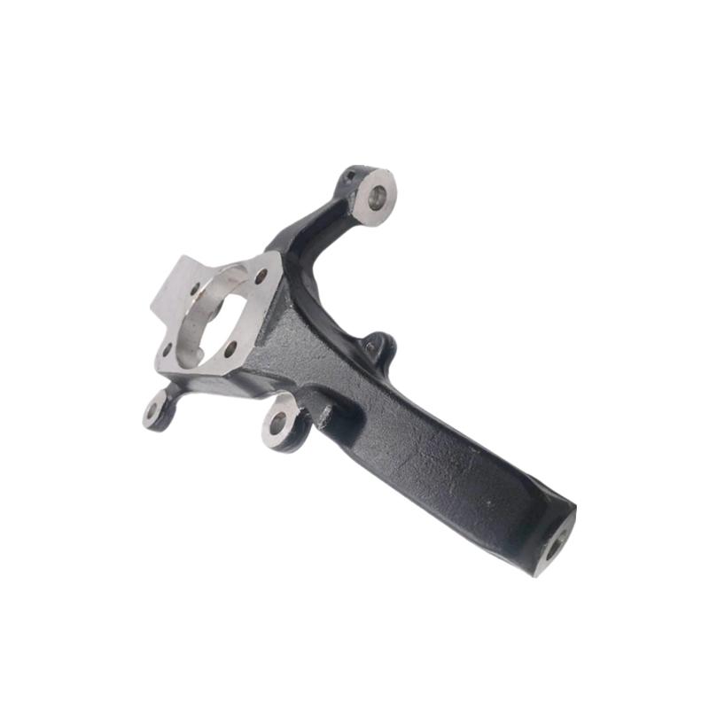 The front steering knuckle connects the wheel hub, brake assembly, and suspension components. It allows the wheel to pivot for steering while supporting the vehicle's weight and handling forces during driving. A worn or damaged steering knuckle can lead to poor handling, uneven tire wear, and potential safety issues.