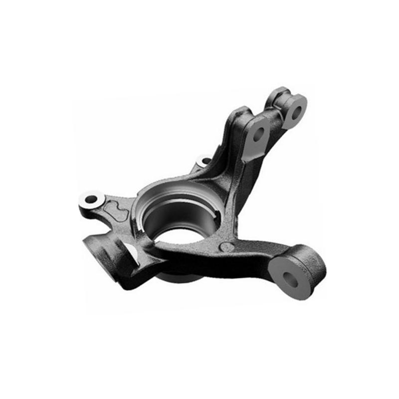 The steering knuckle is a critical component of the front suspension system that connects the wheel hub, brake assembly, and control arms. It allows the wheel to pivot for steering while maintaining proper suspension geometry.