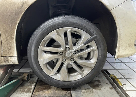 The master said that this is the typical behavior of driving with completely deflated tires. If you continue to drive, there will be a lot of black rubber residue inside the tires; If you continue driving, the tire side will be crushed and separated from the tread, and the wheel rim will directly contact the ground. The consequence is not only to replace the tire, but also to replace the wheel rim, and in severe cases, it may damage the suspension.