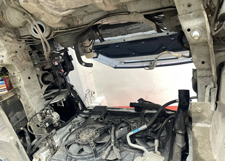 After lifting the car up and confirming again, the master told the owner that the problem of leaking antifreeze in your car is difficult to fix and very special. It requires removing both the engine and gearbox to repair, which is very difficult!