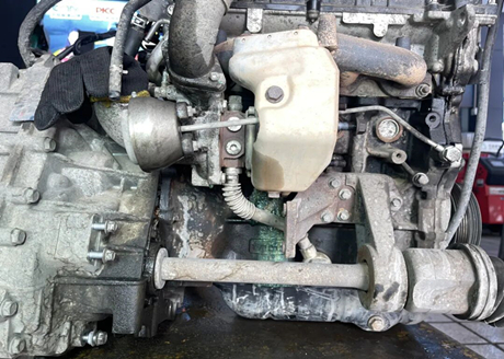 As shown in the figure below, this is the disassembled engine and gearbox assembly. The engine has a 1.5-liter displacement with turbocharging, and the gearbox is of CVT type.