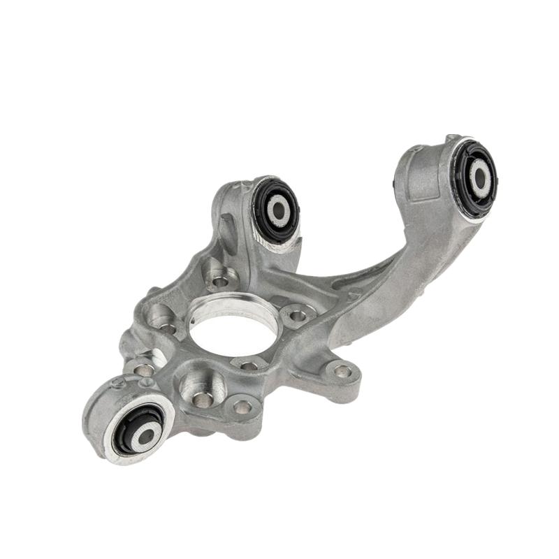 [Function]: The steering knuckle is primarily responsible for transmitting the motion from the steering linkage to the front wheel, allowing the driver to have control over the car's direction. Additionally, it also helps to keep the front wheels aligned and in the correct position. This is essential for ensuring proper tire wear and a safer driving experience.