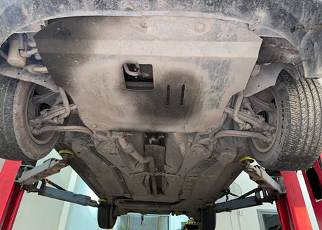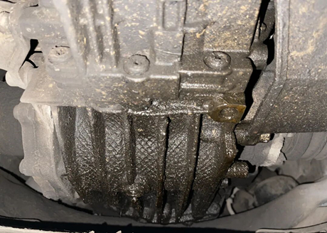 The oil stains on the protective plate come from the gearbox, as shown in the figure below. There is a lot of sludge at the bottom of the gearbox, which is leaking out from the oil seal at the half shaft position.